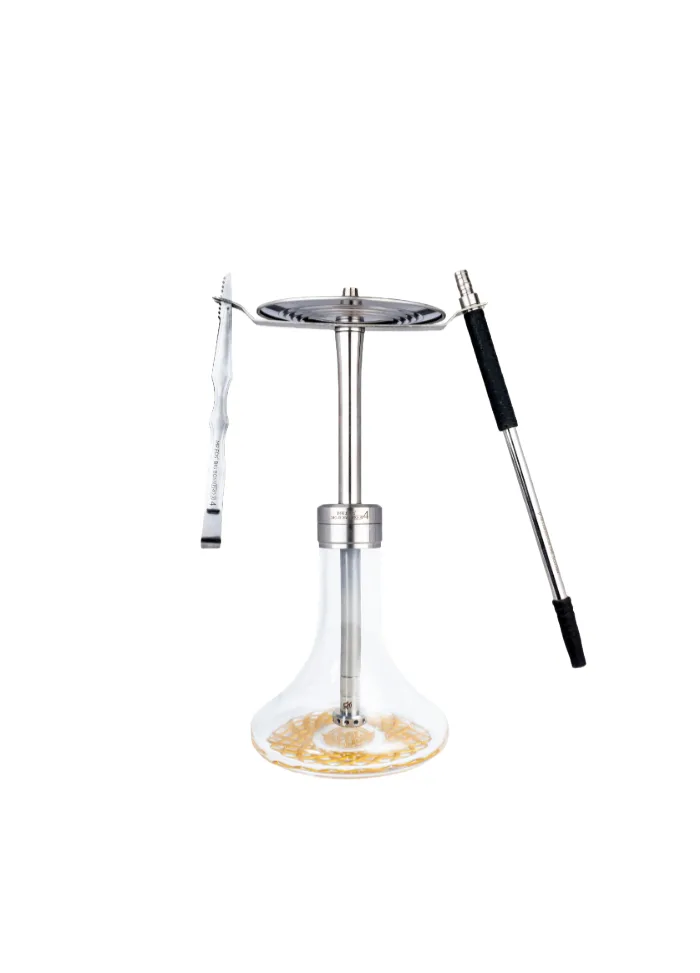 Întreaga țeavă de narghilea este realizată din oțel inoxidabil, inclusiv muștiucul, difuzorul și tava. Finisat cu o vază decorativă care este în relief pe bază și finisată cu culoarea caracteristică argintiu sau auriu. Acum se adaugă la set  cleștele de cărbune, aripa pentru umeraș lancea, cârpa de curățare, arcul pentru furtun de narghilea și protectorul de bază