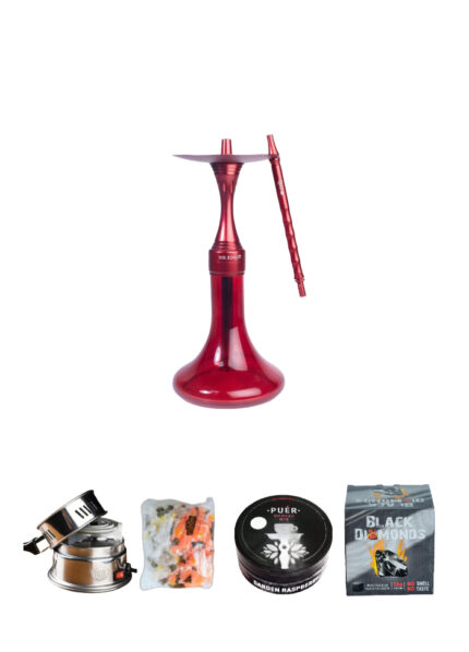 Întreaga țeavă de narghilea este realizată din oțel inoxidabil, inclusiv muștiucul, difuzorul și tava. Finisat cu o vază decorativă care este în relief pe bază și finisată cu culoarea caracteristică argintiu sau auriu. Acum se adaugă la set cleștele de cărbune, aripa pentru umeraș lancea, cârpa de curățare, arcul pentru furtun de narghilea și protectorul de bază