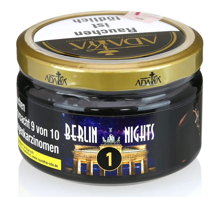 • Adalya Berlin Nights consideră că nopțile din Berlin se aseamănă cu aroma de piersică coaptă și suculentă, completată de o “aluzie” fină de mentă. Este foarte interesant cum simți gustul piersicii în timp ce limba simte și gustul proaspăt de mentă.